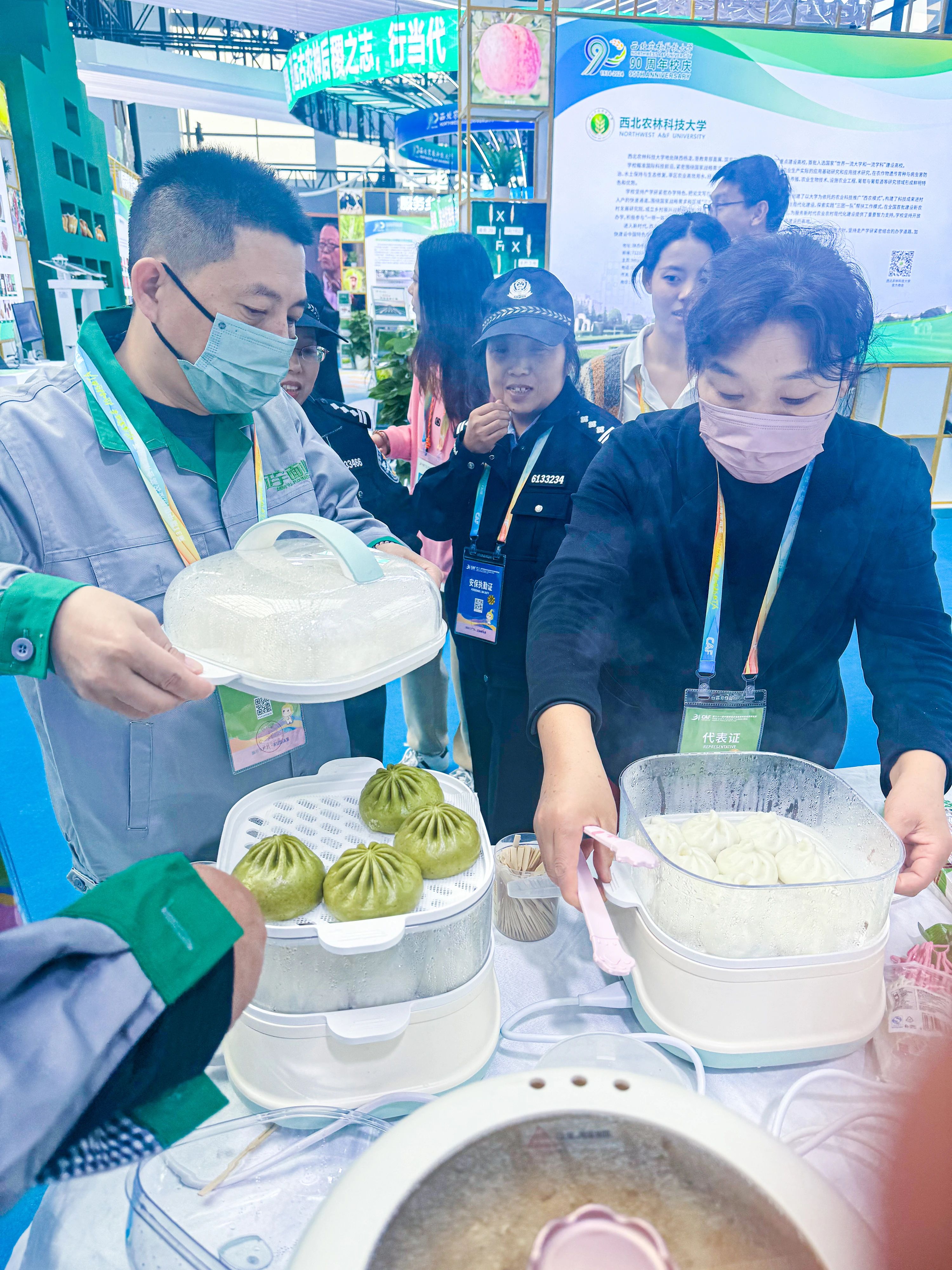 正宇集團(tuán)展臺(tái)前熙熙攘攘,參展觀眾對(duì)正宇集團(tuán)獨(dú)具特色的富硒面粉、本草醋、非油炸方便食品等產(chǎn)品表現(xiàn)出了極大的興趣。而在品鑒了現(xiàn)場(chǎng)蒸制的包點(diǎn)、餃子之后更是贊不絕口。